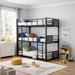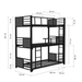 Cuenta con dos barandales de seguridad y dos escaleras resistentes, una de ellas movible, asegurando un acceso seguro a todos los niveles. Fabricada con estructura metálica robusta, la litera ofrece un soporte confiable para tus colchones (no incluidos), garantizando durabilidad y estabilidad.